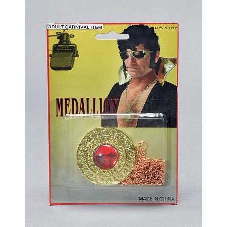 Our Gold Medallion with red jewel is perfect to complete your 70’s Disco or Elvis costume.