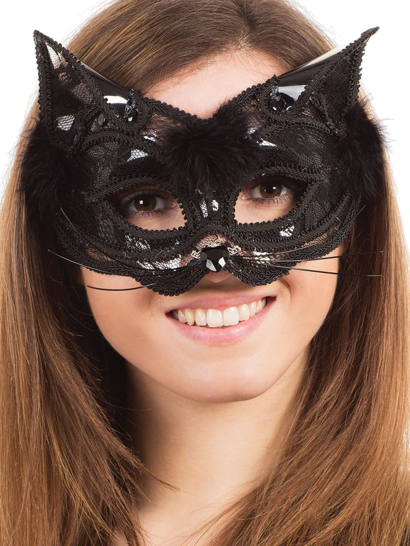 Our Black Lace Cat mask is purrrfect for any masquerade ball. It also has fur accents to help add to that purrfect detail.
