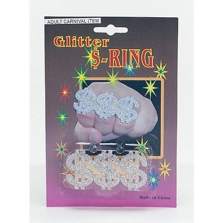 This ring with 3 glitter dollar signs is a great finishing touch for any pimp costume.
