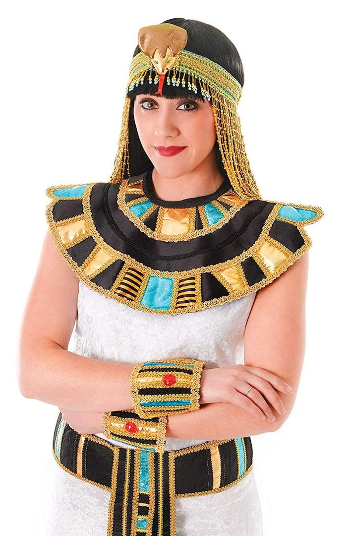 This gold, black and blue Egyptian collar is the ideal accessory to complete your Egyptian look.
