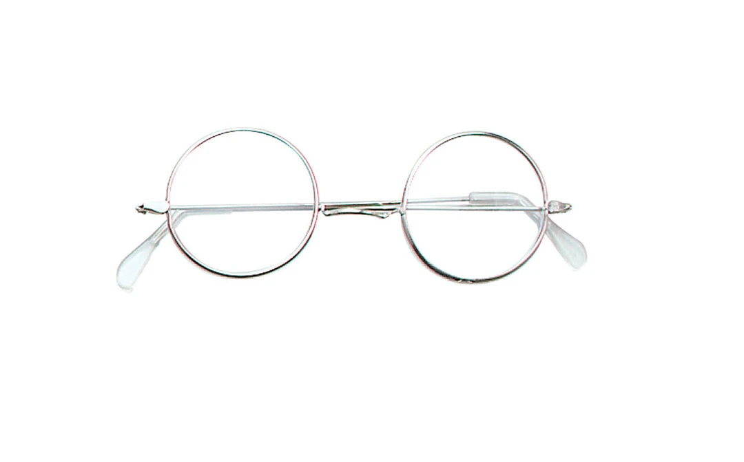 Round glasses with wire frames and no lens.