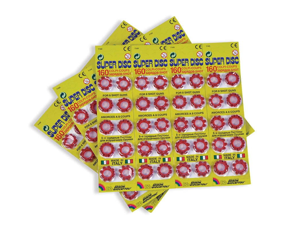 Suitable for cap guns that take 8 shot caps, you can also snap the individual caps off the ring and use them in exploding practical jokes that require caps. The pack contains a total of 160 caps! (That is 20 rings).