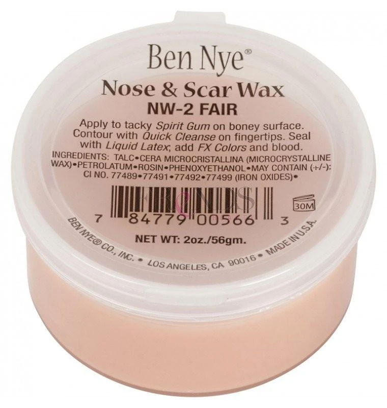 Ben Nye’s Fair, Nose and Scar wax is pliable, yet firm, used to create simulated injuries such as a bullet hole or broken nose.