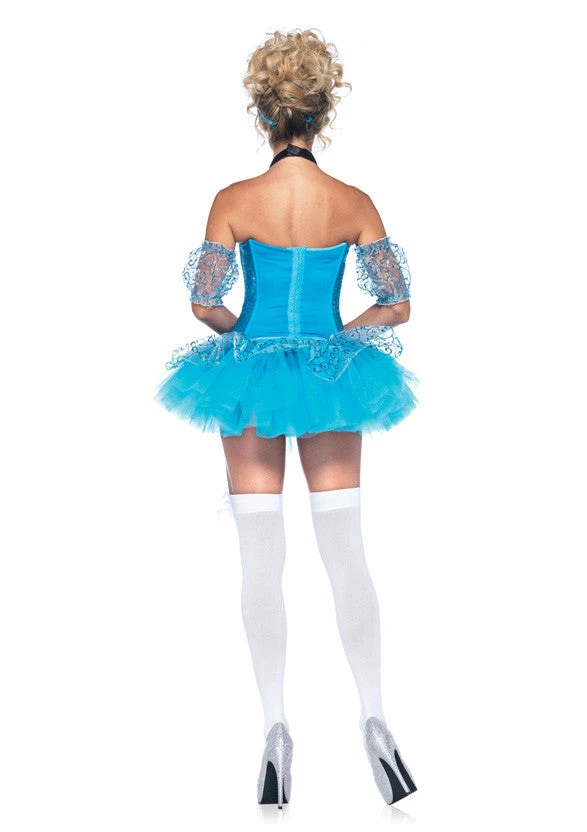 Our Leg Avenue Cinderella 5 piece fancy dress costume features a sequin corset, tutu skirt, arm puffs, choker and headband.