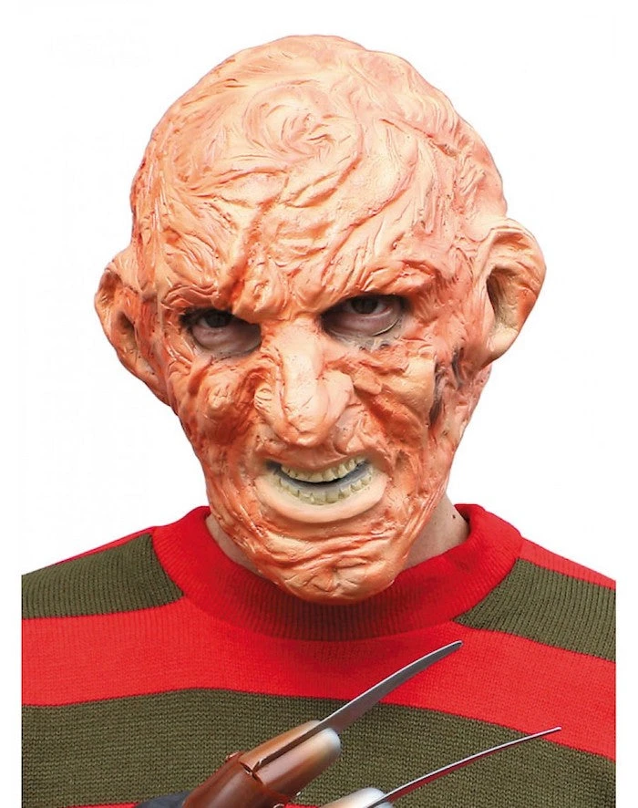 Our Burnt face mask is includes horrible disfigurements including burns, torn ears and rotting teeth, based on Freddy from the Classic Nightmare on Elm Street series.