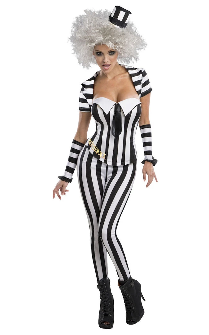 Cause chaos in the mortal world, chase away unwanted Halloween guests and raise the party’s temperature with this stripy Beetlejuice outfit.Â