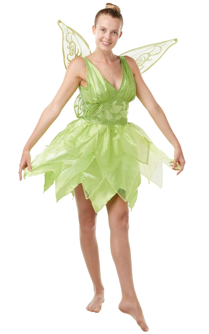 Sprinkle a little magic fairy sparkle wherever you go in this fantastic Tinker Bell costume which includes a neon green dress with layered chiffon and satin skirt.