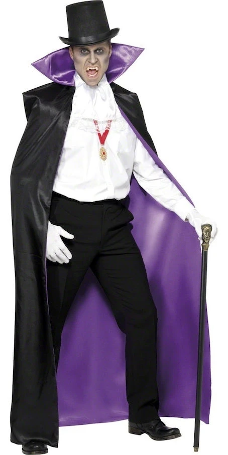Our Adult Deluxe Reversible Cape in Black and Purple is perfect to create the Vampire look this Halloween.