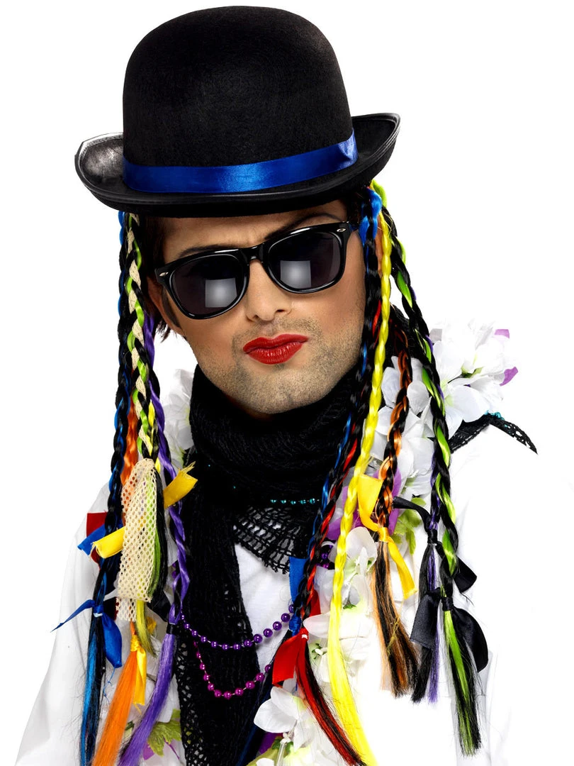 Transport yourself back to the eighties with this Boy George wig & hat combo.