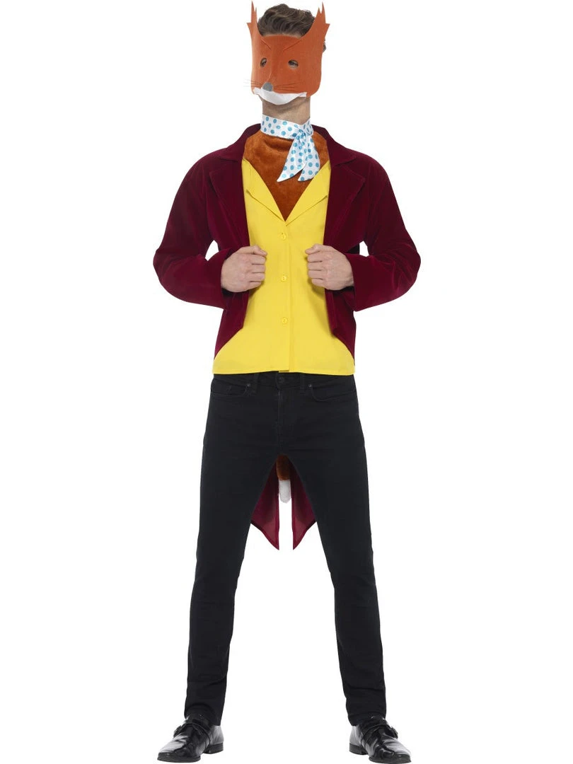 Complete with jacket, mock waistcoat, fur chest, cravat and mask.