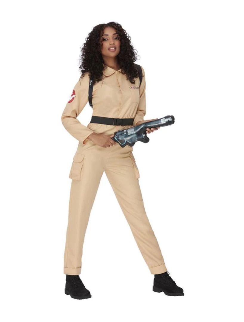Our Official Licensed Female Ghostbusters Costume includes a beige all in one jumpsuit with pocket detail, a buckle belt fastening and an inflatable back pack.