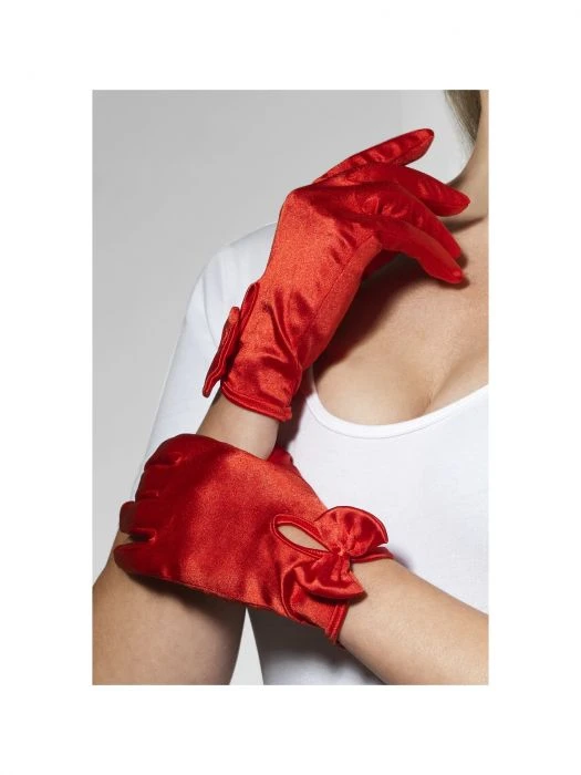 These Short Red Gloves With Bow are a great little finishing touch to a variety of costumes.