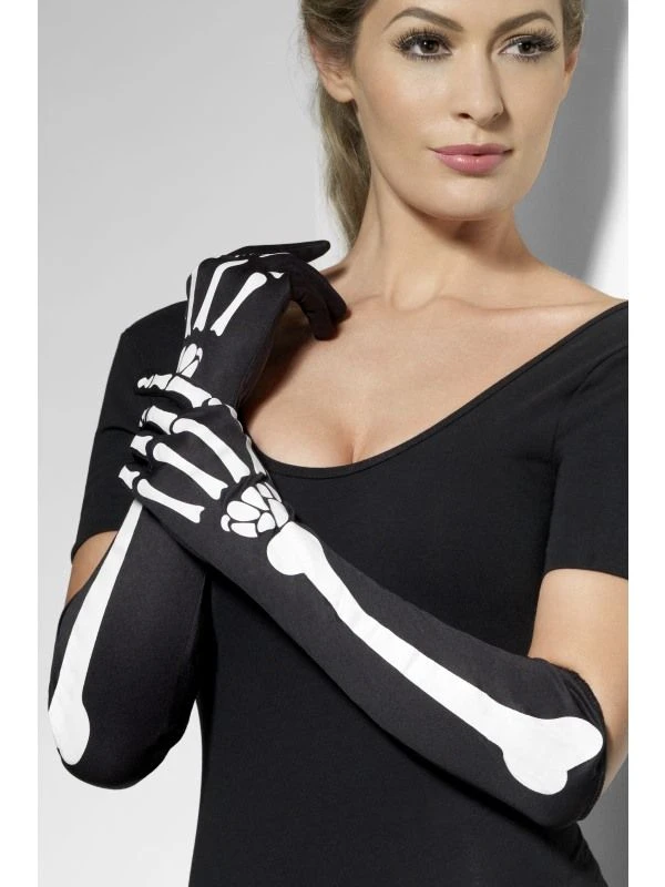 Our elbow length Skeleton Gloves are perfect to add the finishing touch to your costume this Halloween.