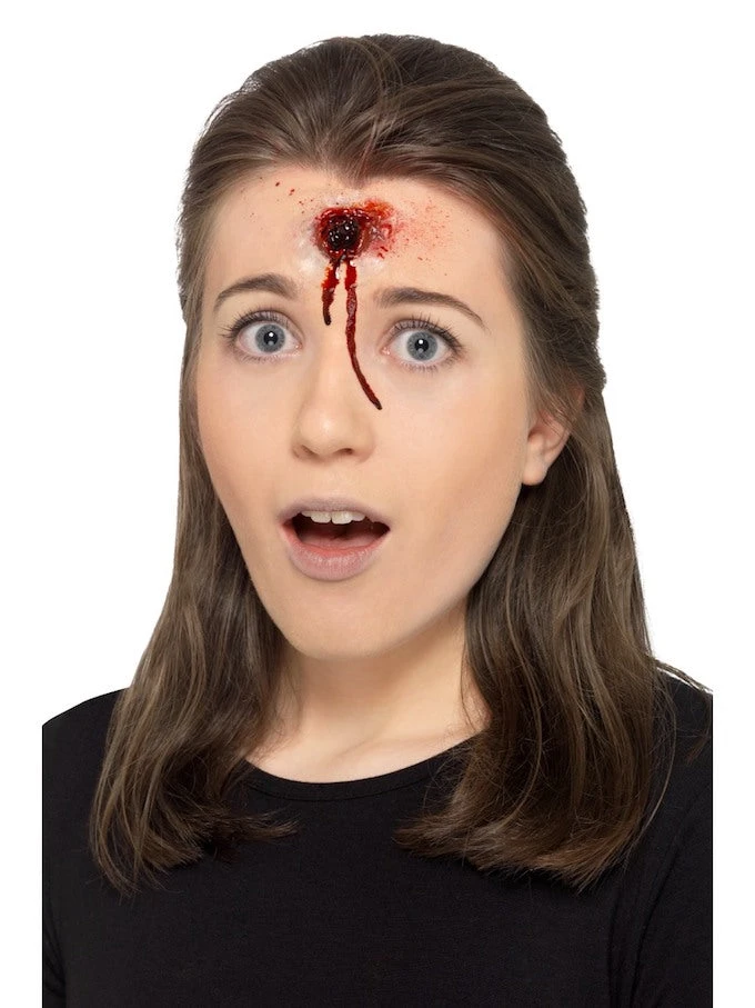 Our Latex, Flesh Coloured Hole in Head Prosthetic is realistic and very effective, perfect for Halloween.