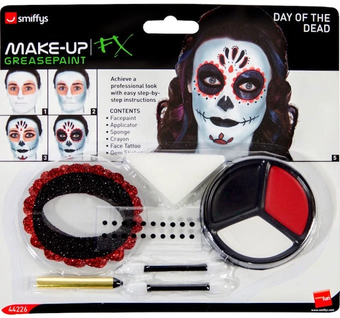 Our Day of The Dead Make Up Kit will transform your face into an attention grabbing masterpiece.