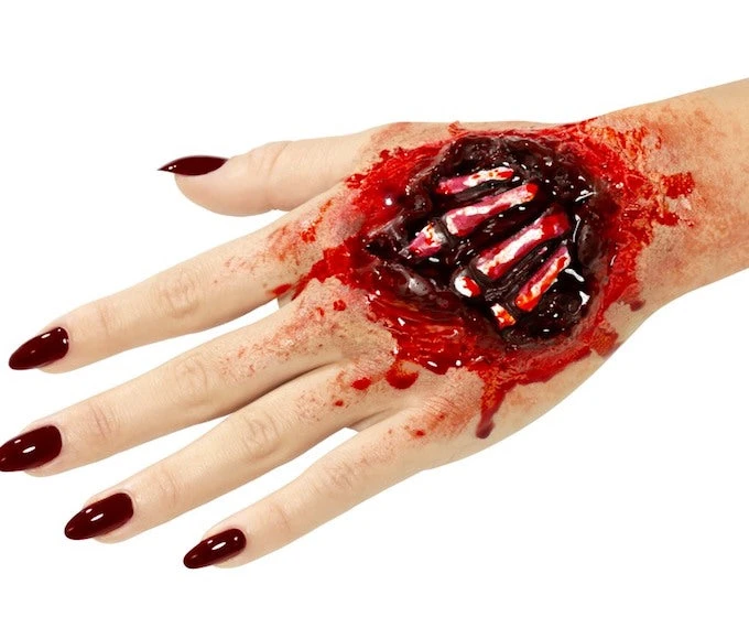 Our Latex, Burnt Hand Prosthetic is realistic and very effective, perfect for Halloween.