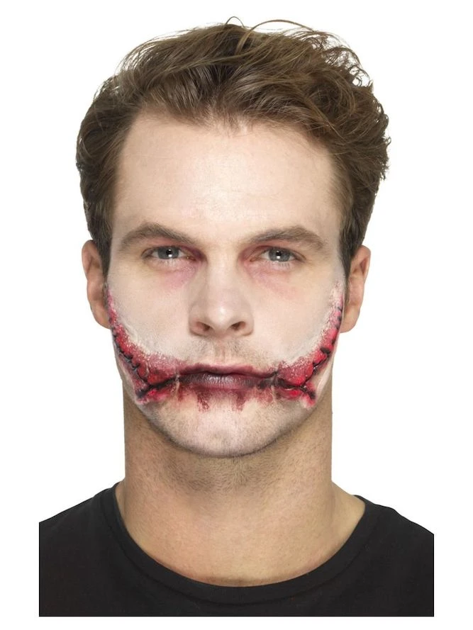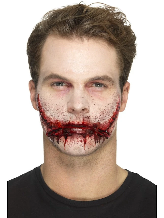 Our Latex, Stitched Smile Prosthetic is realistic and very effective, perfect for Halloween.