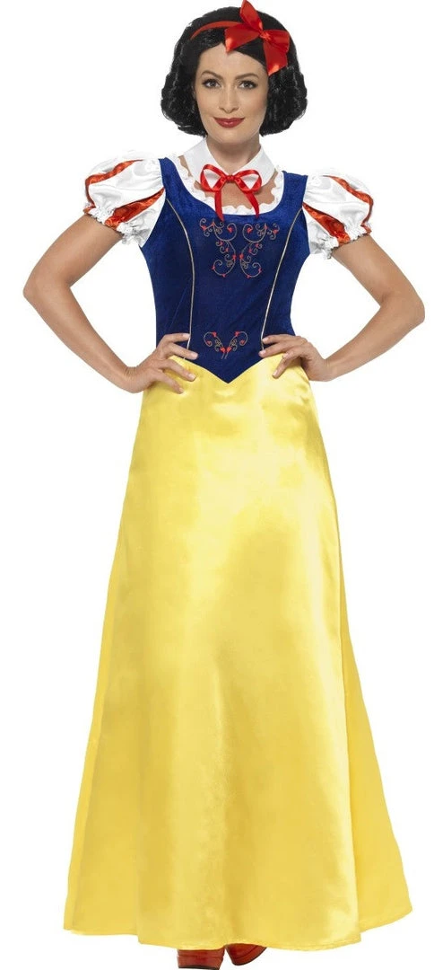 Our Princess Snow costume comes complete with floor length dress, collar and headband.