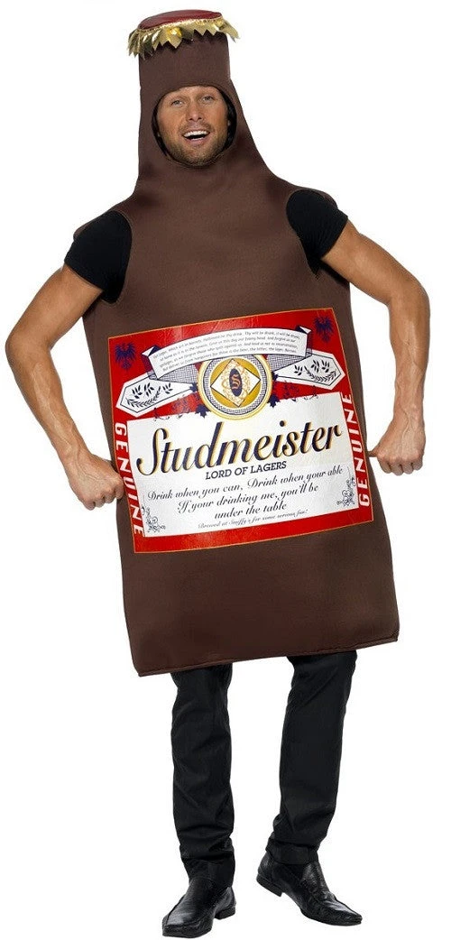 Our Studmeister Beer Bottle Costume, complete with all in one tunic and bottle head, is perfect for a “stag do” or a lads nights out party.