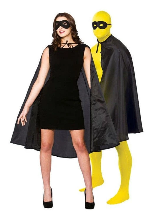 This simple black cape and mask are great for a range of fancy dress costumes.