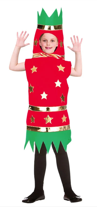 Our Children’s Christmas Cracker Costume includes a one piece costume, suitable for age, 5 to 8 years.