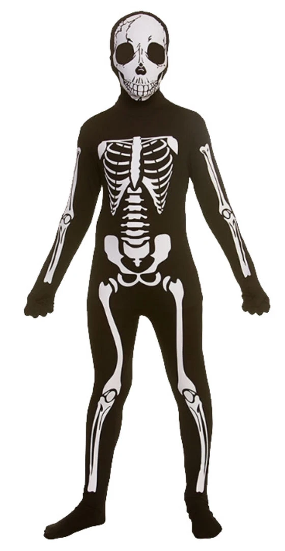 Scare everyone this halloween in this fantastic Skeleton Skinz costume which includes a One piece stretch costume with a pull down hood.