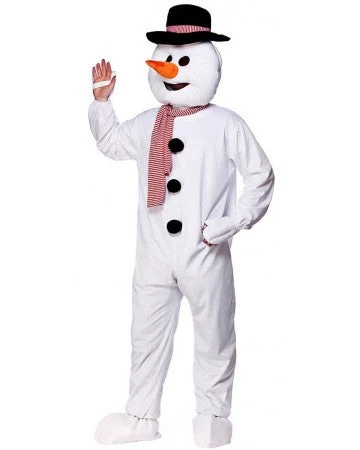 Our Snowman Mascot includes head and jumpsuit with attached shoe and hand covers.Â