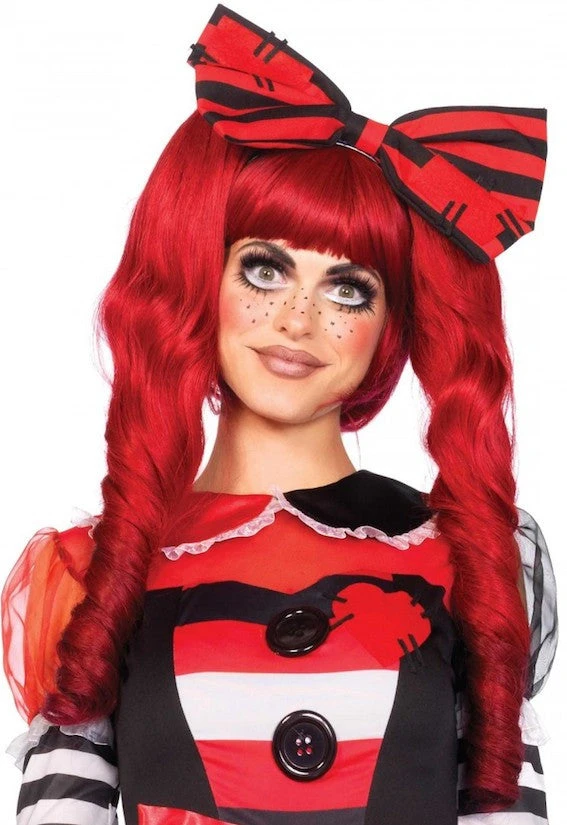 Our Red, Dolly Bob Wig With Clip On Pony Tails includes bob wig and optional ringlet clips